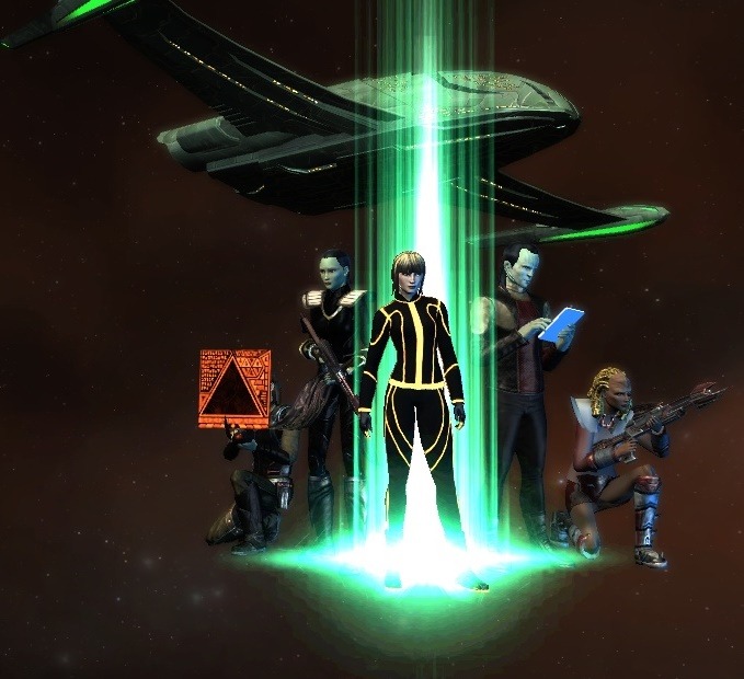 Captain Koril (in her clubwear) and her brave crew.