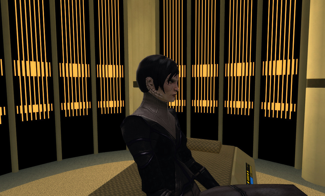 We are being held at Earth Spacedock. I am so tired of sickbay. I am tired of Federation medical officers poking and prodding and trying to be coy. I am tired of replicated Earth food and cold air. I finally convinced someone to bring me something warmer to wear, and they provided me with this sleek, black, vaguely sinister tunic. They claimed that it was designed by their resident tailor Ghemik Telur, a Cardassian. I loathe his sense of style and humor, clearly his time living here has twisted him. At least the tunic keeps me warm.