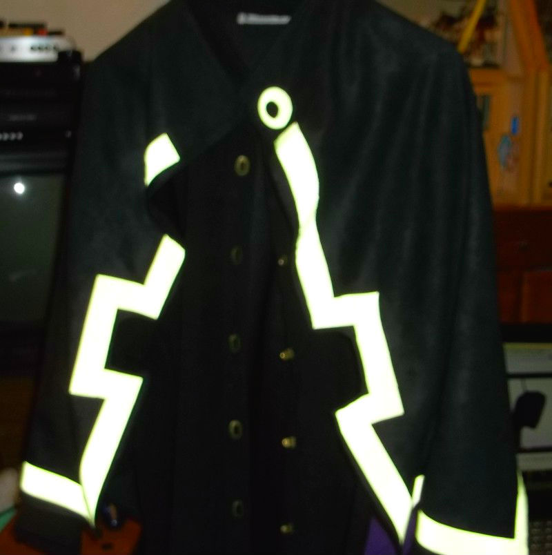 The jacket is two sizes too big for me, but I was having trouble finding anything in grey. I added the red on the sleeves.