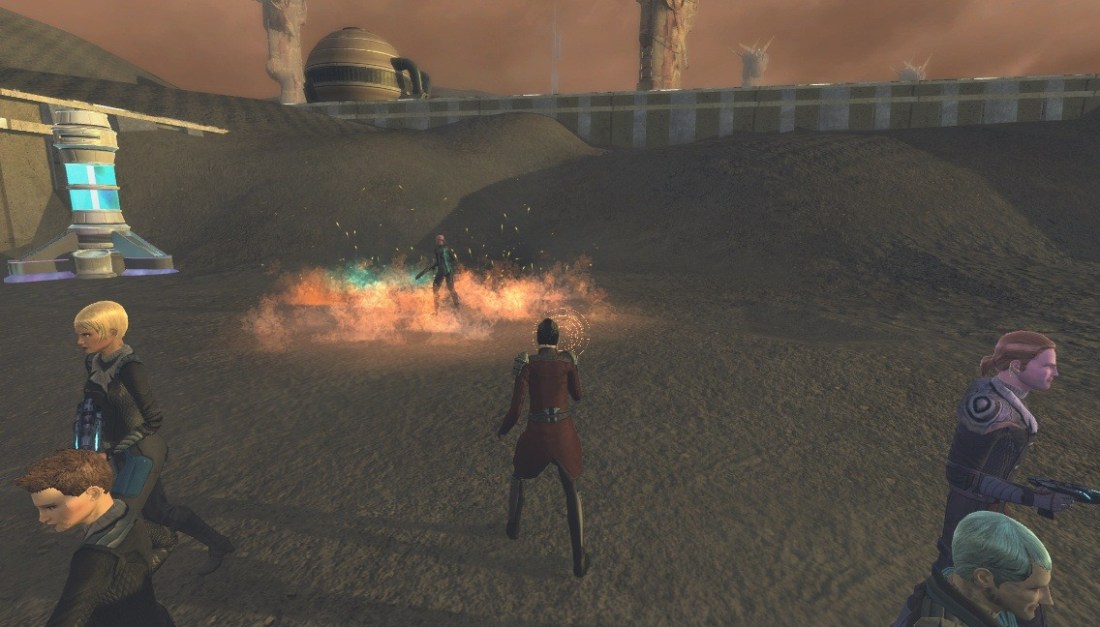 Feeling a warm rush all over her body, she raised the rifle to eye level and fired directly at the creature. Boom. It stopped moving. Boom. She fired again. And again. And again. She stood her ground, firing an almost continuous stream at the thing, barely aware of her target anymore, barely seeing through her fury. In her mind, she was destroying something else. In her thoughts, she was seeing an entirely different away mission.